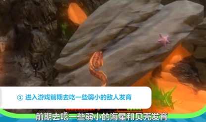 挑选一条你钟爱的鱼开启游戏之旅,初期可以通过捕食一些弱小的海星与贝壳来促进自身成长发育。