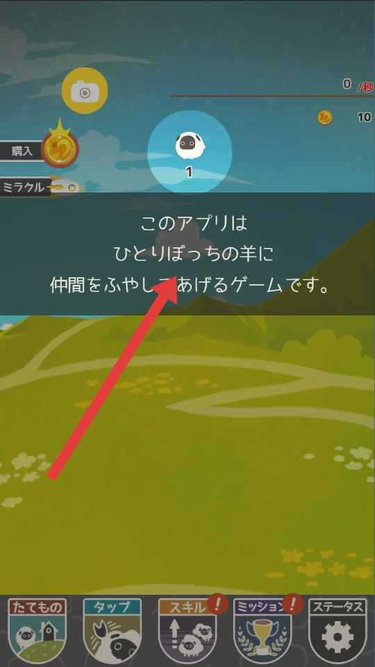 点击屏幕就能生成小羊,每次点击都会增加若干小羊;随着小羊数量变多,它们会每秒自动产出金币,金币的数量会显示在画面的右上角。