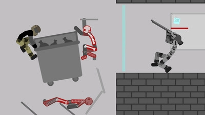 在游戏里借助后空翻动作,搭配不同武器来消灭敌人。
