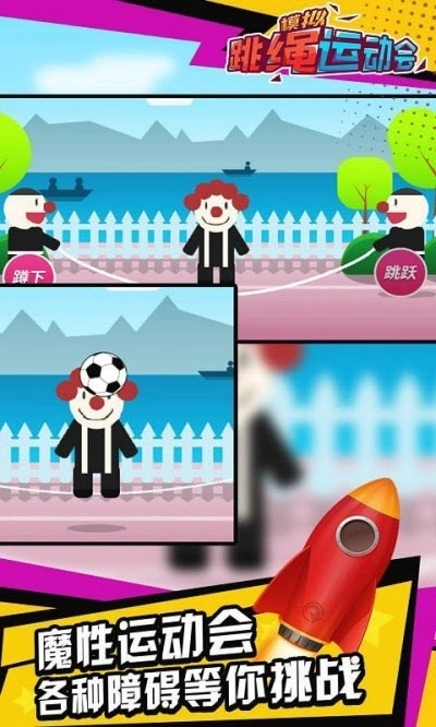 模拟跳绳运动会是一款卡通风格的体育动作游戏,操作十分简单,玩家只需点击屏幕即可完成跳绳动作。