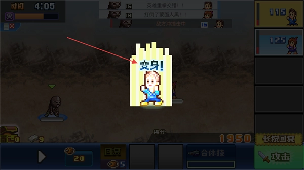 4、当英雄的蓄力值积累到特定状态时,拖动英雄图标即可触发变身形态。