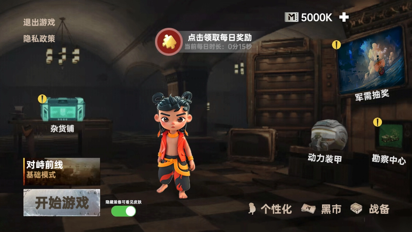2、游戏首页界面如图所示,玩家可打开个人战备背包查看各类道具