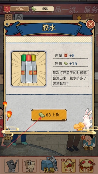 4、持续完成生意经类任务,解锁更多商品、提升店铺等级,推进文具店经营。
