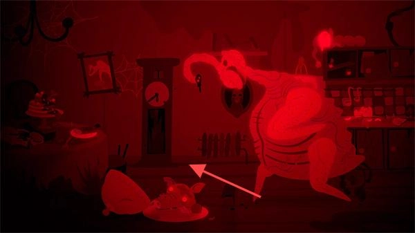 2、置身于红色诡异风格的场景里,要留意箭头所指的方向,同时避开怪物的攻击,确保自身的安全。