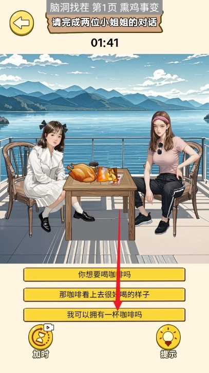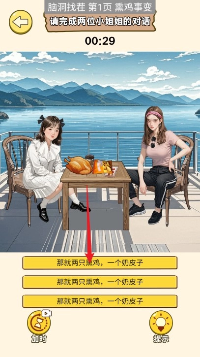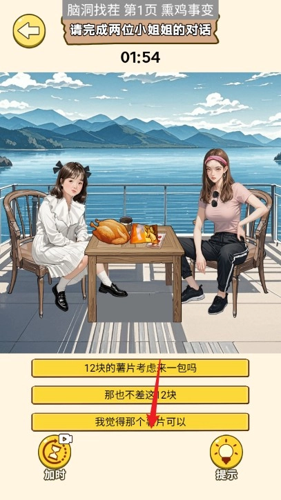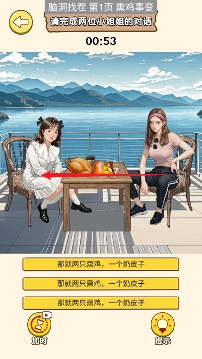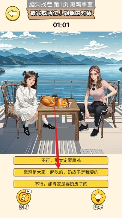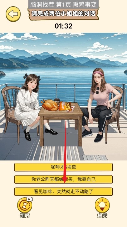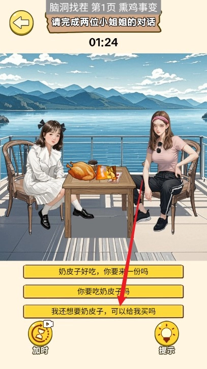 8、上滑右边小姐姐的口袋,将钱移动给左边的小姐姐