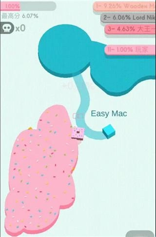 3、地盘扩展:玩家需持续扩大自身地盘范围,操作方式为用手指拖动方块,让其沿着已有地盘的边缘移动并形成一个闭合的圈,当这个圈完全闭合后,圈内区域便会转化为玩家的地盘。