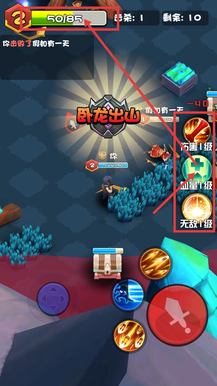 2、战斗中攻击敌人时,要合理运用技能按钮释放技能,以此提高伤害输出,增加击杀数量。