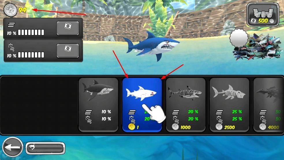 3、使用金币解锁各类鲨鱼,不同鲨鱼具备各异的攻击属性,能够增强破坏能力。