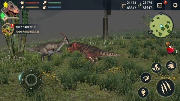 3、玩家能够通过捕食其他恐龙或植物,获取经验与进化值,以此提升自身的恐龙基因。