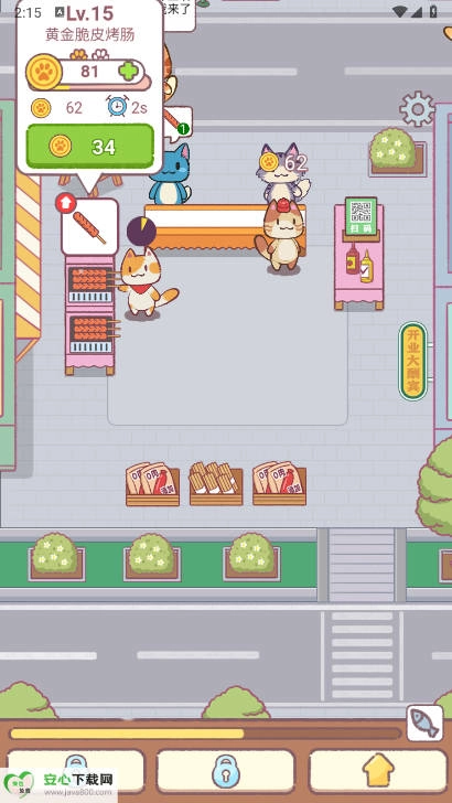 通过日常经营接待猫咪顾客,完成订单获取金币收益,以此积累收益并提升店铺等级。店铺等级的提升通常与累计营业额和顾客满意度相关,随着等级提升,会逐步解锁扩张所需的权限和资源。例如,等级达到5级时,可开启增加餐桌数量的功能;等级提升至10级时,能解锁厨房扩建的选项。
