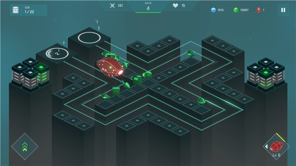 十字防守是一款极具趣味的单机休闲塔防游戏,它采用简洁的3D赛博风格画面,玩法十分简单——玩家只需依据不同关卡的地形来布置防御塔,通过持续扩展防御塔阵容、进行升级来增强自身实力,最终完成关卡通关。