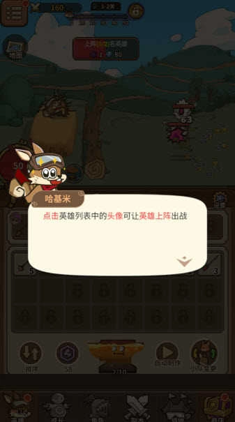 7、在英雄列表里点击头像,就能让对应的角色上阵参与战斗。