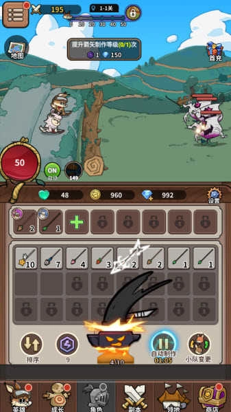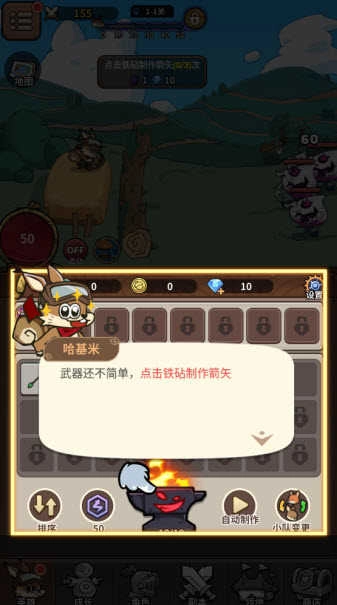2、点击铁砧制作箭矢,获取初始武器装备。