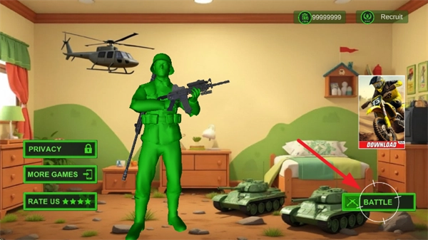 1、首先在本站找到陆军玩具兵大战游戏,打开游戏后,点击右下角的“BATTLE”按钮即可开始游戏;