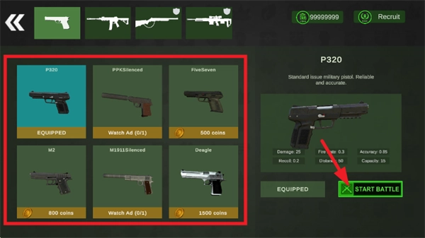 2、选好武器后,点击下方的“START BATTLE”按钮;