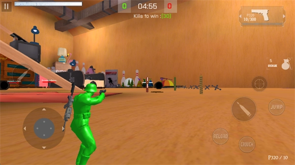 《陆军玩具兵大战》是一款冒险射击类游戏。在游戏里,玩家将化身一名玩具士兵,在战场上展开射击对决,模拟真实的两军交战场景。游戏过程中,玩家需要听从长官的指令,与队友协同进退,同时还能运用各式各样的战术策略。这不仅仅是一款普通的射击游戏,它还丰富了玩具兵的角色设定——坚守内心的正义,绝不滥杀无辜,孩子玩起来也能从中获得积极正面的影响。游戏目标积极向上,内容既紧张刺激又充满趣味,如果你也喜爱射击游戏,不妨来体验一下吧。