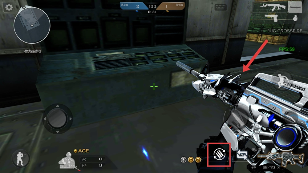 1、开局第一步先留意【小地图】,借助移动轮盘来操控角色行动,尽快熟悉【潜伏者基地】的地图路线,抢先占据有利的位置。