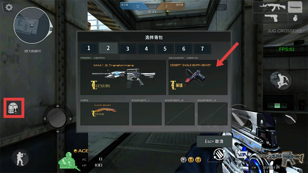 4、点击背包按钮后,能挑选并配备【M4A1-S-Transformers】这类武器,依据战局变化切换适配的枪械,以此增强战斗中的优势。