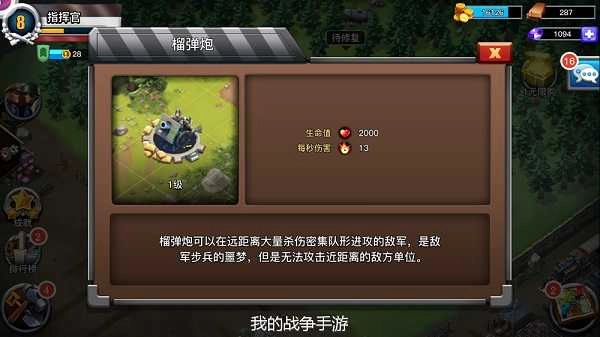 同样在5级阶段解锁2门榴弹炮,作为前期射程最远的重型装备,它可以远距离打击集群敌人,不过无法对近距离目标发起攻击,所以建议把它部署在后排位置。