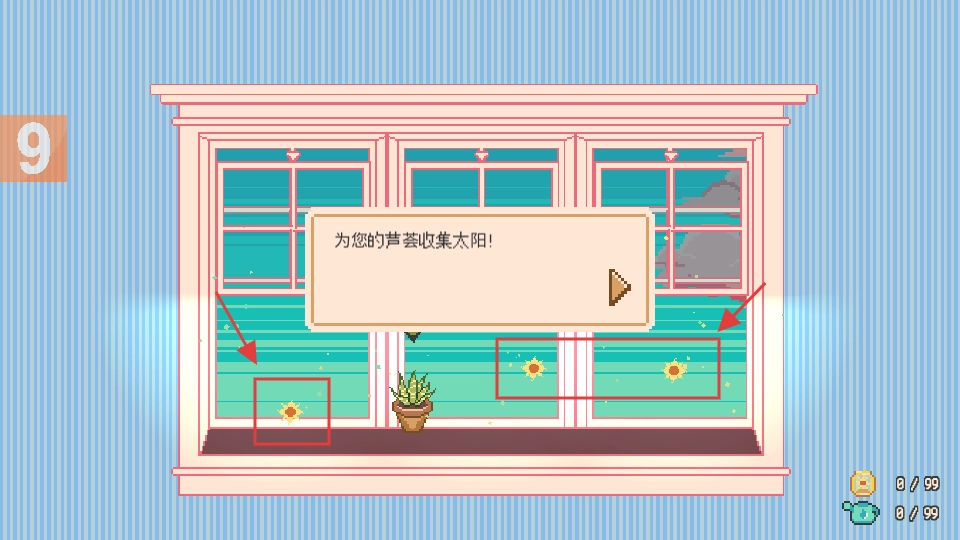 3、收集窗户区域的阳光,为【芦荟】补充阳光养分。