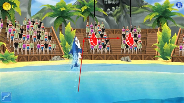既能解锁不同品种的鲨鱼以满足收集欲,又可借助奖励提升鲨鱼的表演能力,这种双重体验让闯关过程更有目标感,从而延长娱乐时长。
