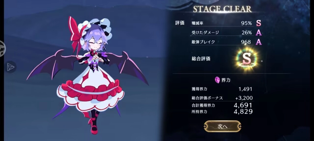 关卡评价受[歼灭率]、[遭受伤害]及[消弹数(敌弾ブレイク)]影响