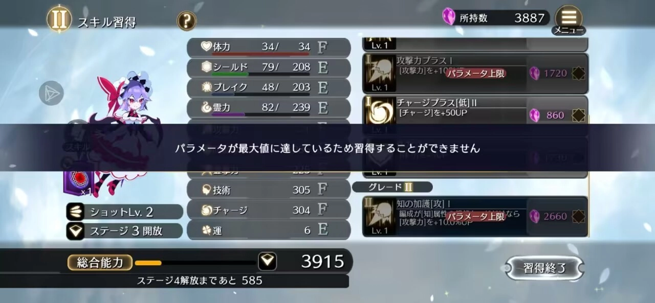 ·获得过去最高界力和当时的学习等级点数,然后跳过关卡。