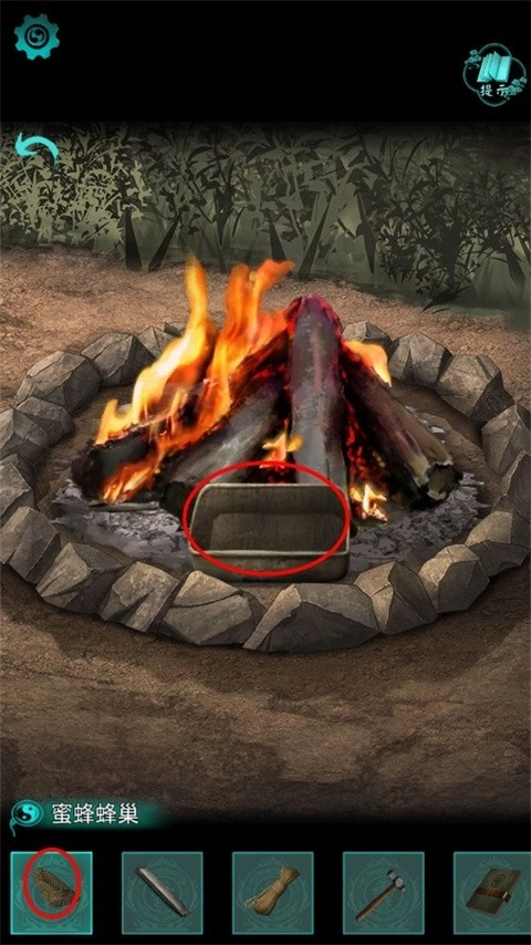 4、然后将铁盒放到火堆中,将蜂蜜放置在铁盒中;