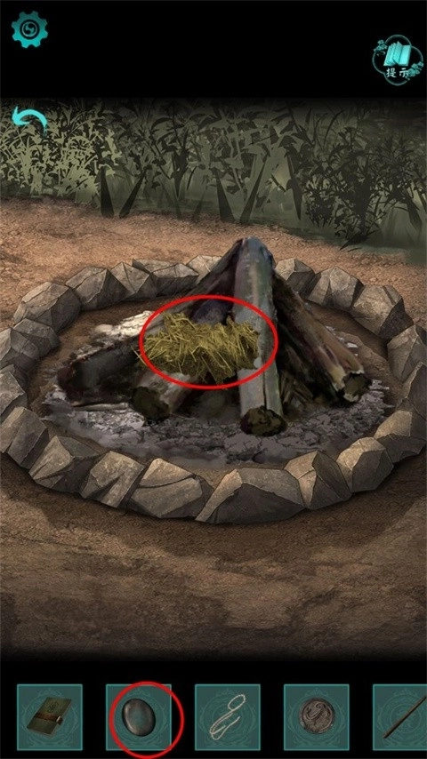 3、将草放到火堆上然后用刚刚得到的镜片引燃;