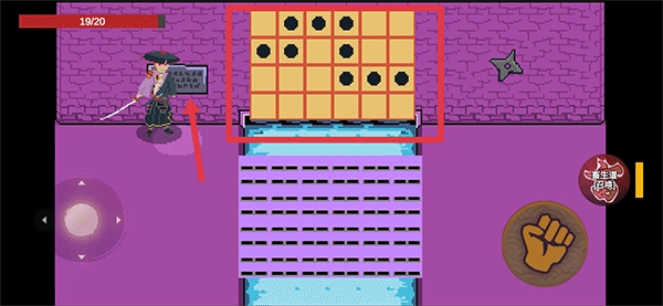 1、漂泊佩恩的操作方式简洁明了,左下角为虚拟摇杆控制移动,右侧按钮用于发起攻击